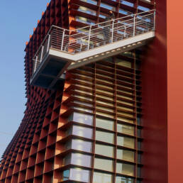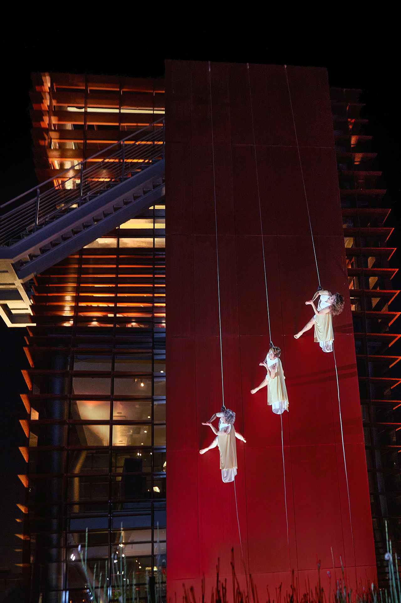 A show-stopping aerial dance interpreted the Armani beauty Lip Power Lipstick as three dancers floated overhead using the canvas of Vespertine’s façade as their stage.