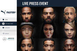 Utilizing a clean, custom proprietary platform design, Industria invited media attendees from APAC, EMEA and the Americas to our virtual environment. On the microsite, attendees could review media materials in the press room, download executive and athlete bios and join the live mainstage presentation featuring an exclusive product unveiling. Erin Longin, PUMA’s Global Director of its Run/Train Business Unit, in addition to the lead engineering team at Mercedes AMG Petronas F1—as well as PUMA ELITE Track and Field athletes—discussed the development, timeline and benefits of the partnership and product.